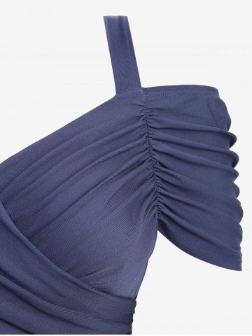 Plus Size Flowers Tie Dye Print Ruched Shell Buckle Cold Shoulder High Low Tank Dress - Blue - 3x | Us 22-24