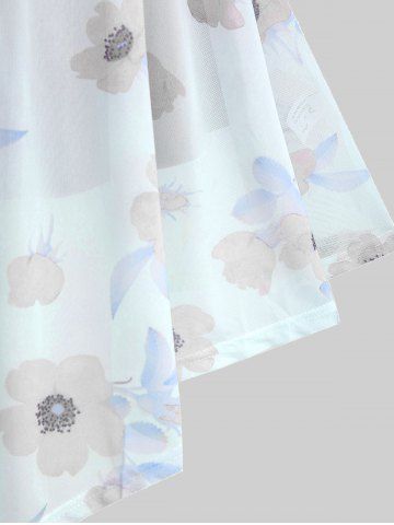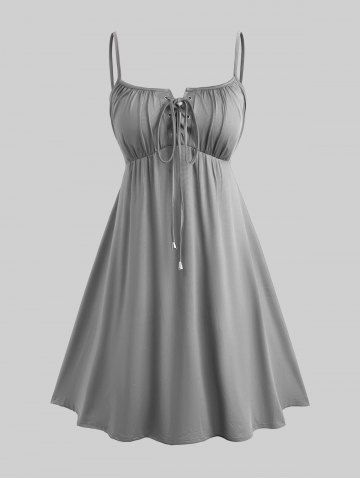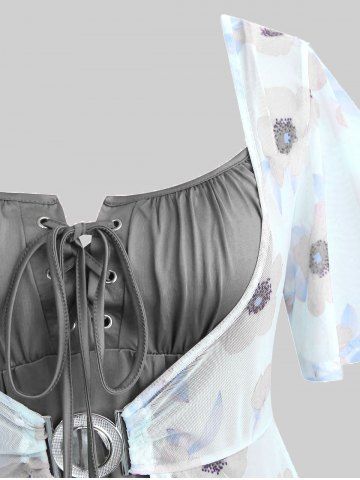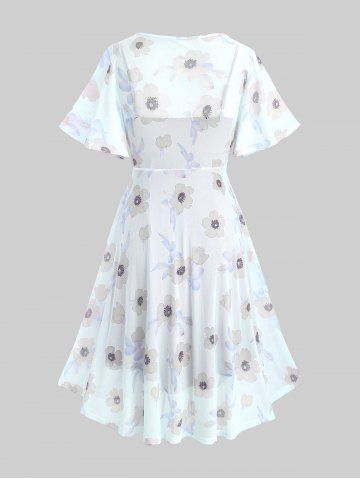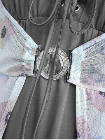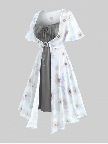 Plus Size Flutter Sleeves Floral Dress and Lace-up A Line Cami Dress Set - Dark Gray - 4x | Us 26-28