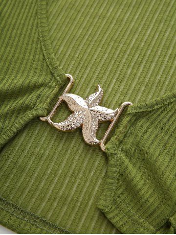 Plus Size Lace Up Ribbed Texrured Top and Flower Leaf Print Twist Cami Dress - Green - L | Us 12