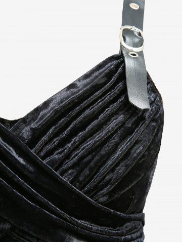 Print Dresses > Plus Size Ombre Print Surplice Ruched Grommets PU Leather Straps Velvet Tank Dress