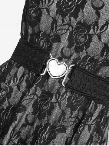 Plus Size Rose Flower Lace Panel Layered A Line Dress with Removable Belt - Silver - L | Us 12
