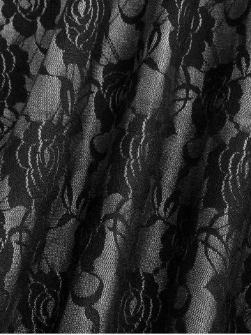 Print Dresses > Plus Size Rose Flower Lace Panel Layered A Line Dress with Removable Belt