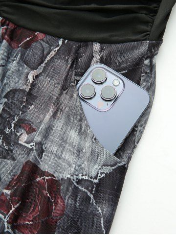 Plus Size Rose Flower Marble Print Lace Trim Ruched Tank Dress - Black - 3x | Us 22-24