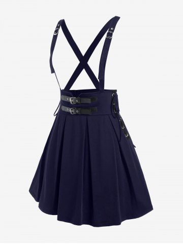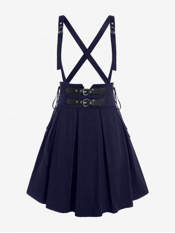 Gothic Lace Up Buckles Godet Hem A Line Suspender Skirt - Deep Blue - L | Us 12