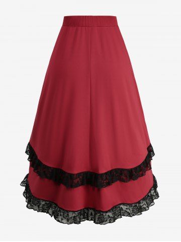 Skirts > Gothic Plus Size Buttons Lace Trim High Low Asymmetric Skirt