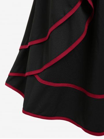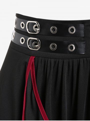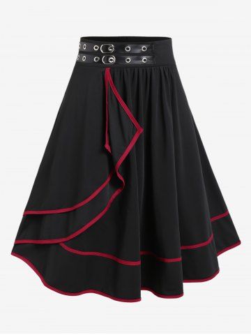 Plus Size PU Contrast Tape Grommet Buckle Ruffles Ruched Midi A Line Skirt - Black - 4x | Us 26-28