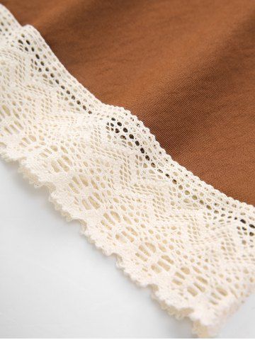 Plus Size Lace Up Crochet Hollow Out Ethnic Trim Patchwork A Line Skirt - Coffee - 2x | Us 18-20