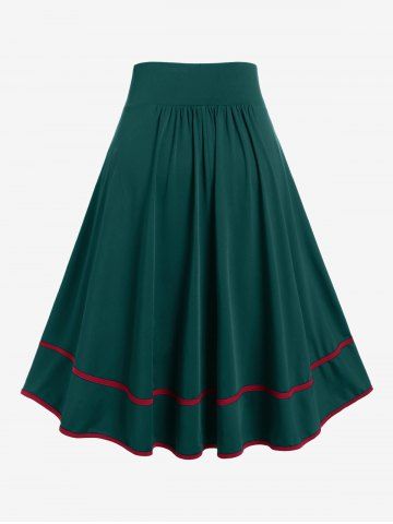 T*****y5Plus Size PU Contrast Tape Grommet Buckle Ruffles Ruched Midi A Line SkirtColor: BLACK Size: 1X | US 14-16Plus Size Contrast Tape Buckled Midi A Line Skirt - Black - 1x | Us 14-16 (2)beautiful black lined red.midi a has a red line running on areas will match w red black