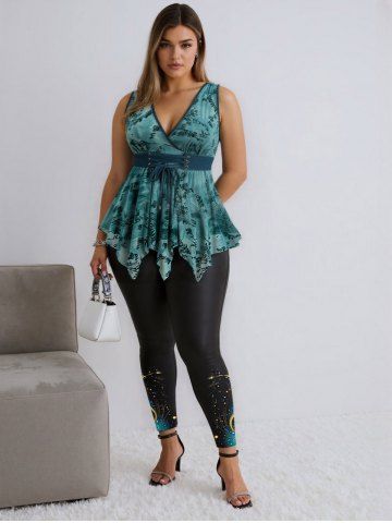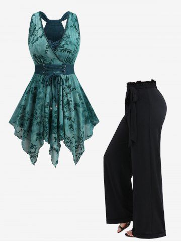s*****45Plus Size Butterfly Flowers Leaf Flocking Ruched Lace Up Surplice Asymmetrical Tank TopColor: DEEP GREEN Size: L | US 12Loves this design and style could ask for more colors but I feel like the teal green does look good on a lot of people