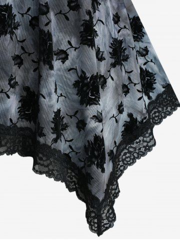 m*****r5Plus Size Floral Flocking Tie Dye Lace Trim Handkerchief Crossover Tank TopColor: BLACK Size: 3X | US 22-24True to size,looks how it does online here