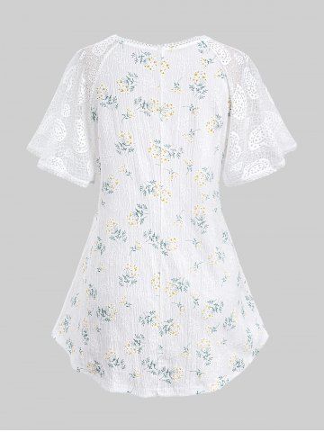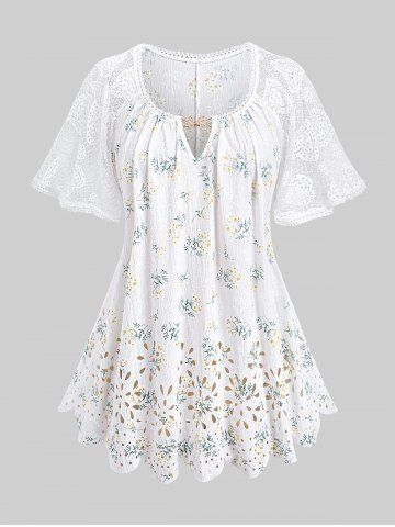 C*****l5Plus Size Floral Printed Laser Cut Scalloped Buckle Keyhole Heart Crochet Sleeve TopColor: WHITE Size: 1X | US 14-16So cute! I love the cut-outs and the way this fits. Really looking foward to Spring so I can bring this one out of the closet for work when it gets a bit warmer.