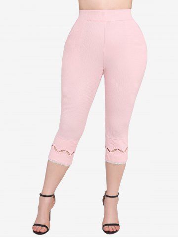 N*****e5Plus Size Hollow Out Lace Trim Textured Embossed Pockets Capri LeggingsColor: LIGHT PINK Size: 1X | US 14-16Très joli fidèle aux images confortable et agréable au toucher je recommande merci besucoup