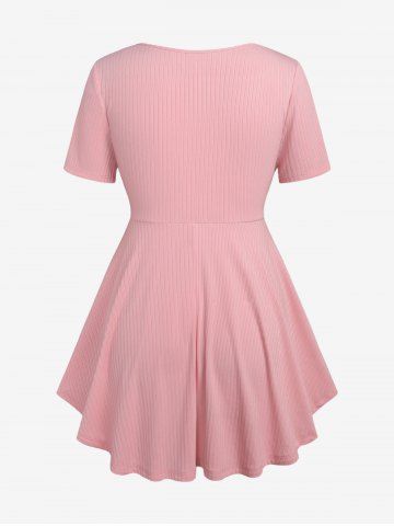 Flower Watercolor Print Twist Ribbed 2 In 1 Top and Lace Up Side Capri Pants Plus Size Outfit - Orange