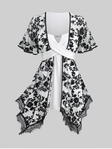 a*****s4Plus Size Flowers Embroidery Mesh Tassel Lace Trim Crisscross Buckle Panel TopColor: WHITE Size: 1X | US 14-16love it