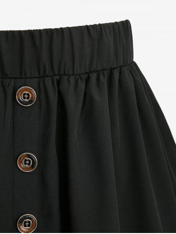 Summer Outfits > Jacquard Embroidery Pointelle Hollow Out Top and Mock Button Layered Pocket A Line Skirt Plus Size Outfit