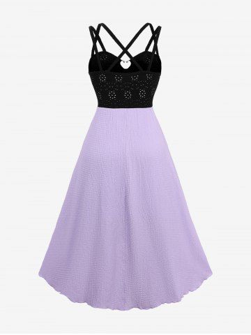 Lace Bolero Jacket and Cinched Laser Cut Hollow Out Crisscross Strappy Flounce Hem Dress Plus Size Outfit - White