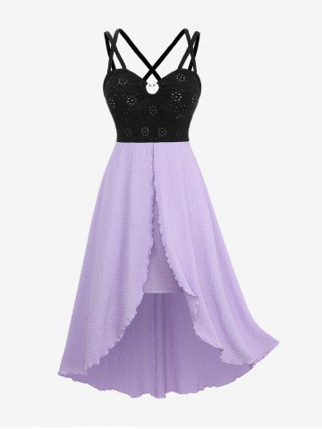 Summer Outfits > Lace Bolero Jacket and Cinched Laser Cut Hollow Out Crisscross Strappy Flounce Hem Dress Plus Size Outfit