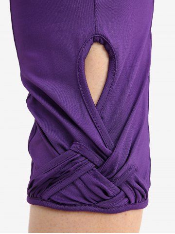 Lace-up Asymmetrical 2 In 1 Top and Hollow Out Braided Capri Leggings Plus Size Outfit - Purple