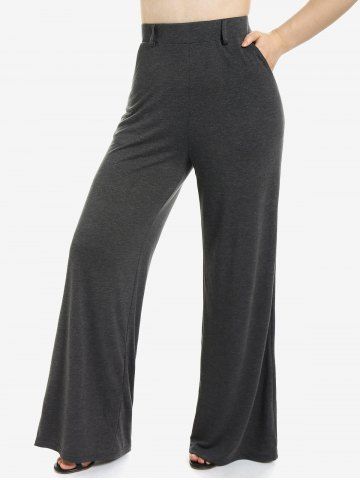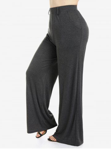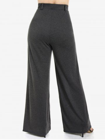 Lace Up Cold Shoulder 2 in 1 Tee and Wide Leg Pull On Pants Plus Size Summer Outfit - Gray