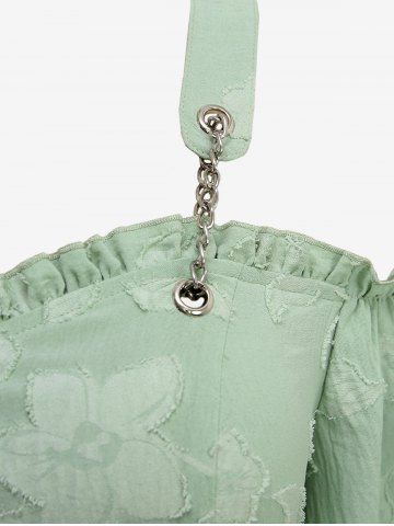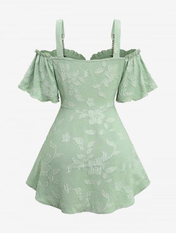 d*****m5Plus Size Cold Shoulder Floral Leaf Applique O-Ring Zipper Chain BlouseColor: LIGHT GREEN Size: 4X | US 26-28Light and flowy. Covers the part of the arm we never want to show. Very lady like.