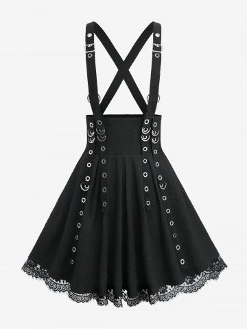 Lettuce Chains Embellished Blouson Tee and Grommet Strap Textured Crisscross Strappy Suspender A Line Skirt Plus Size Outfit - Black
