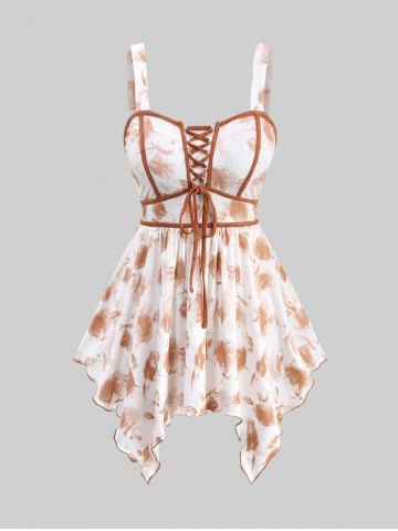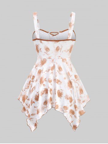S*****e5Plus Size Ombre Flower Print Lace Up Backless Handkerchief Tank TopColor: WHITE Size: 1X | US 14-16True to size. The picture doesn’t do justice. It’s super cute and I love it. The top fits perfectly while the bottom of the shirt has some flare to it.