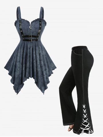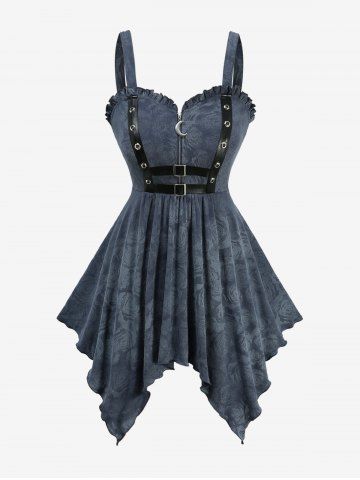 T*****i4Plus Size Ombre Rose Flower Print PU Strap Buckle Zipper Handkerchief TopColor: POWDER BLUE Size: L | US 12Ce top est très bien taille bien mais je suis déçue car sur la photo je le voyais gris foncé et en fait il est bleu et j’ai déjà beaucoup de bleus