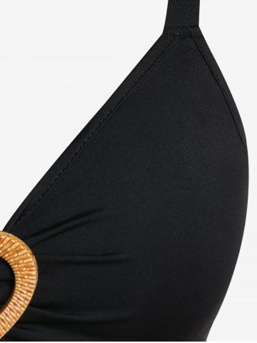 Paisley Crisscross Asymmetrical Tank Top and Lace Up Pants Plus Size Summer Outfit - Black