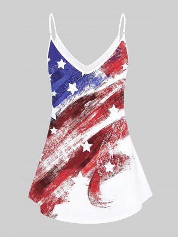 l*****45Plus Size & Curve American Flag Print Patriotic Tank TopColor: WHITE Size: 1X | US 14-16I sure cnt wait till the 4th if July.. I luv this one as well..luv it has the back ribbon on it.. I sure cnt wait to rock this .