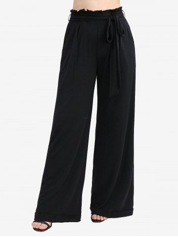 Summer Outfits > Pine Tree Butterfly Print Tank Top and Ruffles Waist Wide Leg Pants Plus Size Outfit