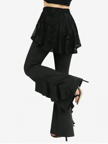 Plus Size Skulls Fishnet Overlay Ruffles Skirted Flare Pants