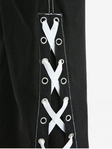 l*****t5Plus Size Split Lace Up Side Grommet Topstitching Pockets Flare PantsColor: BLACK Size: 3X | US 22-24love these trousers, perfect fit, quick delivery, love the lace bit at the bottom of the trousers