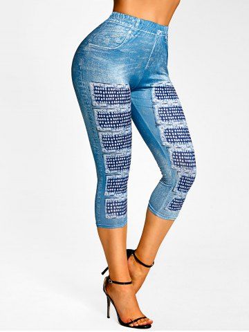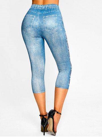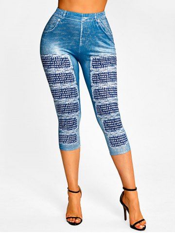 Summer Outfits > Rose Jacquard Twist Ruched Tank Top and High Rise 3D Jean Printed Cropped Jeggings Plus Size Outfit