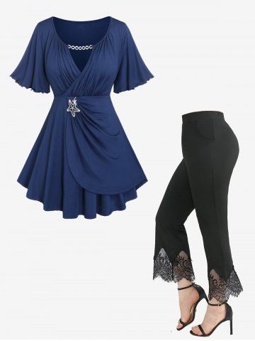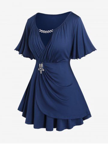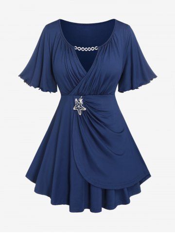 j*****n5Plus Size Lettuce Ruched Keyhole Flutter Sleeves Surplice TeeColor: DEEP BLUE Size: 2X | US 18-20Super cute fits great would highly recommend nWorks for both casual and formal