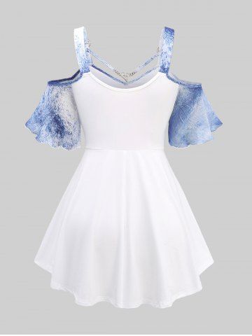y*****65Plus Size Cold Shoulder Splatter Tie Dye Print Heart Buckle Strappy TopColor: BLUE Size: 4X | US 26-28fits so well and love the color