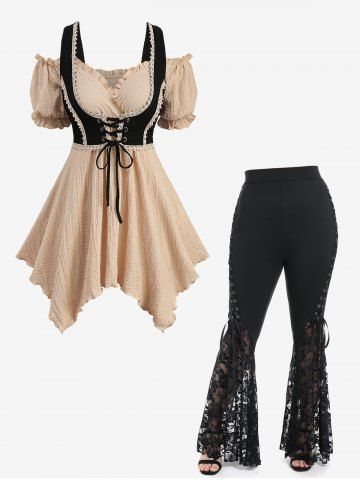 s*****x5Plus Size Lace Panel Pull On Flare Pants with Lace-upColor: BLACK Size: M | US 10Absolutely my favorite pare of pants I have bought here. Works with tons of outfits looks great and I get compliments every time I ware them.