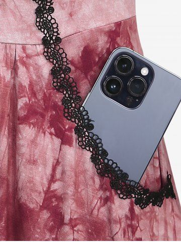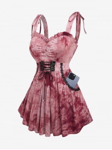 s*****45Plus Size Tie Dye Printed Lace Up Ruched Ruffles Cashew Lace Trim Pockets Tank TopColor: LIGHT PINK Size: L | US 12I love the fact that this top has pockets. Girls get excited to find a dress that has pockets now we can be extremely excited to have shirts designed for us with pockets.