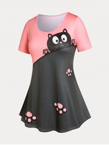 B*****s5Plus Size & Curve Two Tone Cat Print Short Sleeves TeeColor: MULTI Size: 3X | US 22-24Cute cat print in pink or peach and two toned with black, a fun one to wear! The material is soft and comfortable, perfect fit, shipped fast and packaged nicely. High quality design and made very well!