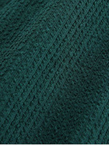 Plus Size Christmas Buttons Turn-Down Collar Textured Square Neck Sweater - Deep Green - L | Us 12