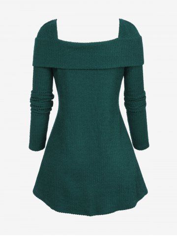 Plus Size Christmas Buttons Turn-Down Collar Textured Square Neck Sweater - Deep Green - 3x | Us 22-24