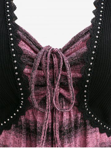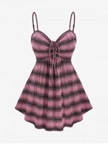 Plus Size Cinched Ruched Striped Knitted Cami Top and Rivet Lace Trim Ribbed Textured Crop Sweater (Adjustable Shoulder Strap) - Light Pink - 2x | Us 18-20