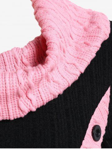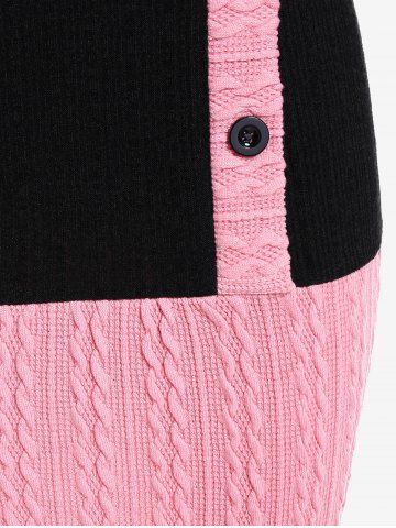 m*****45Plus Size Cowl Neck Cable Knit Two Tone Bodycon Mini Dress with ButtonsColor: LIGHT PINK Size: 1X | US 14-16Received this morning. This cowl neck, pink and black sweater is very beautiful. It fits perfect, it's so very soft. It will look terrific with black leggings. I wear a size 1XL. I'm 5 foot, and weigh about 165 lbs.