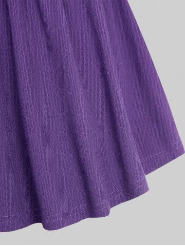 Plus Size Fluffy Trim Lace Up Textured Ribbed Sweater with Grommets Belt - Purple - L | Us 12