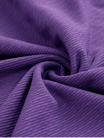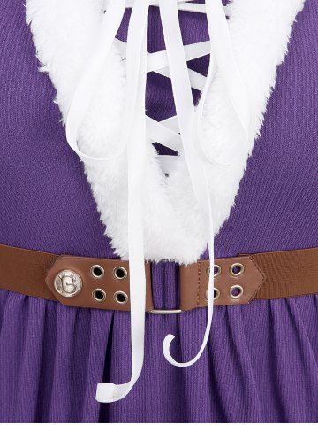 Plus Size Fluffy Trim Lace Up Textured Ribbed Sweater with Grommets Belt - Purple - 4x | Us 26-28