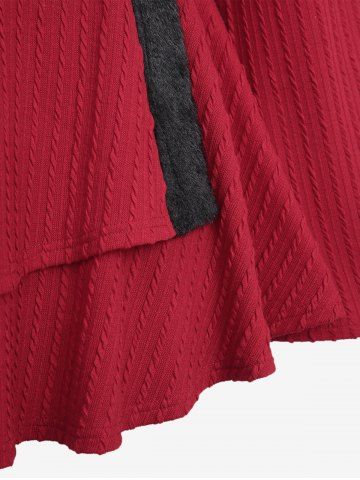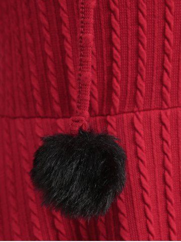Plus Size Fur Trim Panel Fluffy Ball Drawstring Textured Asymmetric Long Sleeve Hooded Knit Sweater - Deep Red - M | Us 10