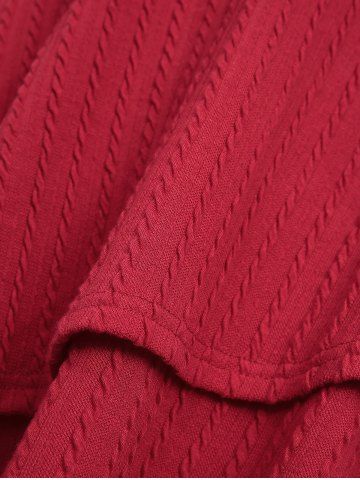 Plus Size Fur Trim Panel Fluffy Ball Drawstring Textured Asymmetric Long Sleeve Hooded Knit Sweater - Deep Red - L | Us 12