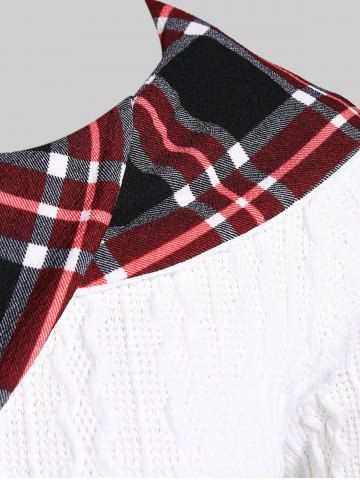 r*****i5Plus Size Plaid Textured Cable Knit Patchwork Asymmetrical Neck Ruched Hooded SweaterColor: WHITE Size: 4X | US 26-28This is probably the most comfortable hoodie I've ever worn. It's also really stylish. Not the biggest fan of the asymmetrical design of the sleeves (you can kinda tell in the picture but I didn't notice until I had worn it a couple of times).