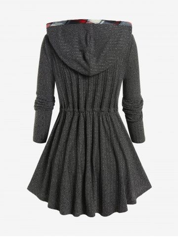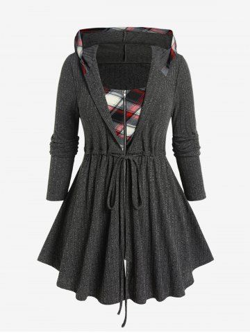 Plus Size Plaid Zipper Fly Hooded Long Sleeves Twofer Coat - Gray - L | Us 12