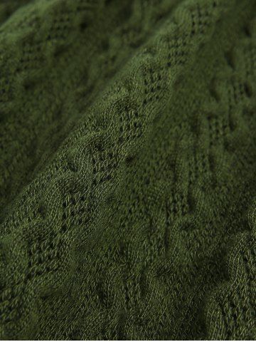 Plus Size Rhinestone Lace Trim Ruffles Belt Cable Knit Ribbed Textured Sweater - Deep Green - 2x | Us 18-20