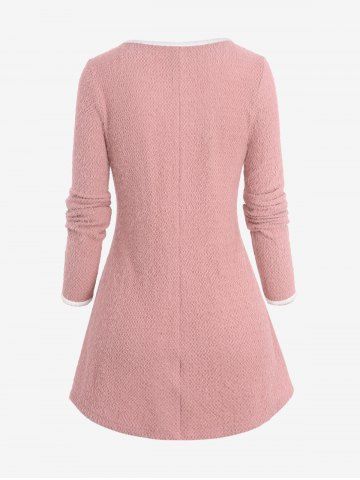 m*****r5Glitter Sparkling Floral Buckle Cut Out Panel Contrast Binding Long Sleeves Fluffy Pullover Knit Sweater and Floral Leaf Colorblock Printed Skinny Leggings Plus Size OutfitColor: LIGHT PINKVery cute! I love the texture of the shirt. the pants do run big